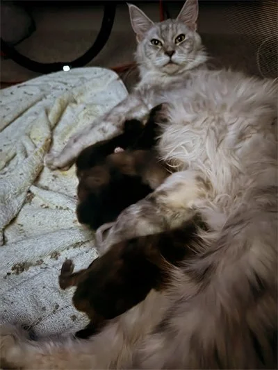 When one of my queens (that’s what we call a female breeding cat) is pregnant, she usually wants lots of attention. Many of them follow me everywhere and want me close by - even pretend they’re going into labor just to get snuggles! I often lose sleep waiting for the big moment. But when those tiny babies finally arrive, it’s all worth it.