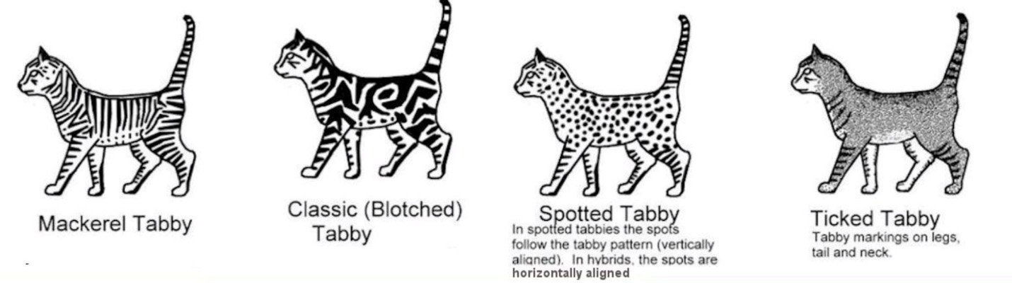 There is the common look of a ‘tabby cat’ that most people think of when they see this. For the most part, who cares what exact kind of tabby cat you have at the end of the day. However, they can look quite different in fur, and it may be helpful distinction to have if asking a breeder for an exact look. Here is a breakdown of how the different tabby’s look.